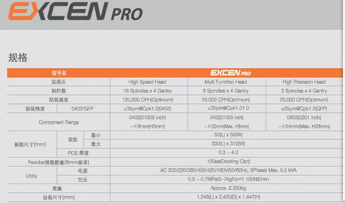 三星貼片機(jī)EXCEN PRO 配有16個(gè)吸嘴,旋轉(zhuǎn)式頭部的高速模塊式貼片機(jī),它實(shí)現(xiàn)了世界同級產(chǎn)品中的最高速度120,000CPH,也實(shí)現(xiàn)了世界最高的面積生產(chǎn)性。另通過元器件的貼裝前·后的監(jiān)控功能(SVS:Side-view Vision System)確保了微小元器件的貼裝信賴性,通過適用不停線基種變更、不同基板混流生產(chǎn)等多種動作模式及世界最初自動接料、自動供料功能的SMART Feeder,實(shí)現(xiàn)了作業(yè)便利性和實(shí)際生產(chǎn)性極大化