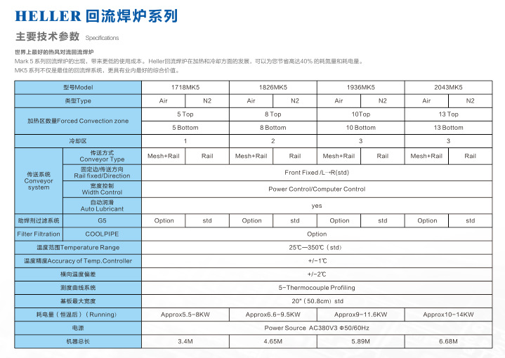 美國HELLER無鉛回流焊,HELLER垂直固化爐,HELLER真空回流焊設備。有HELLER 1809MK3、HELLER1913MK3、HELLER1936MK5、HELLER1707MK3、HELLER1807mk5、HELLER1826MK5、HELLER回流焊2043MK5等全系列產品,HELLER回流焊是進口回流焊性價比最高的回流焊,HELLER回流焊節能高效。