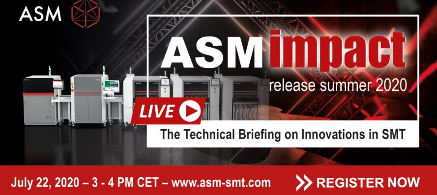 ASM將于7月22日下午3點(diǎn)至下午4點(diǎn)在名為“ ASM Impact – 2020年夏季發(fā)布”的直播中展示SMT生產(chǎn)的最新硬件和軟件版本。除了專家聊天之外,用戶還可以在分拆會(huì)議上與ASM專家討論更詳細(xì)的問(wèn)題。